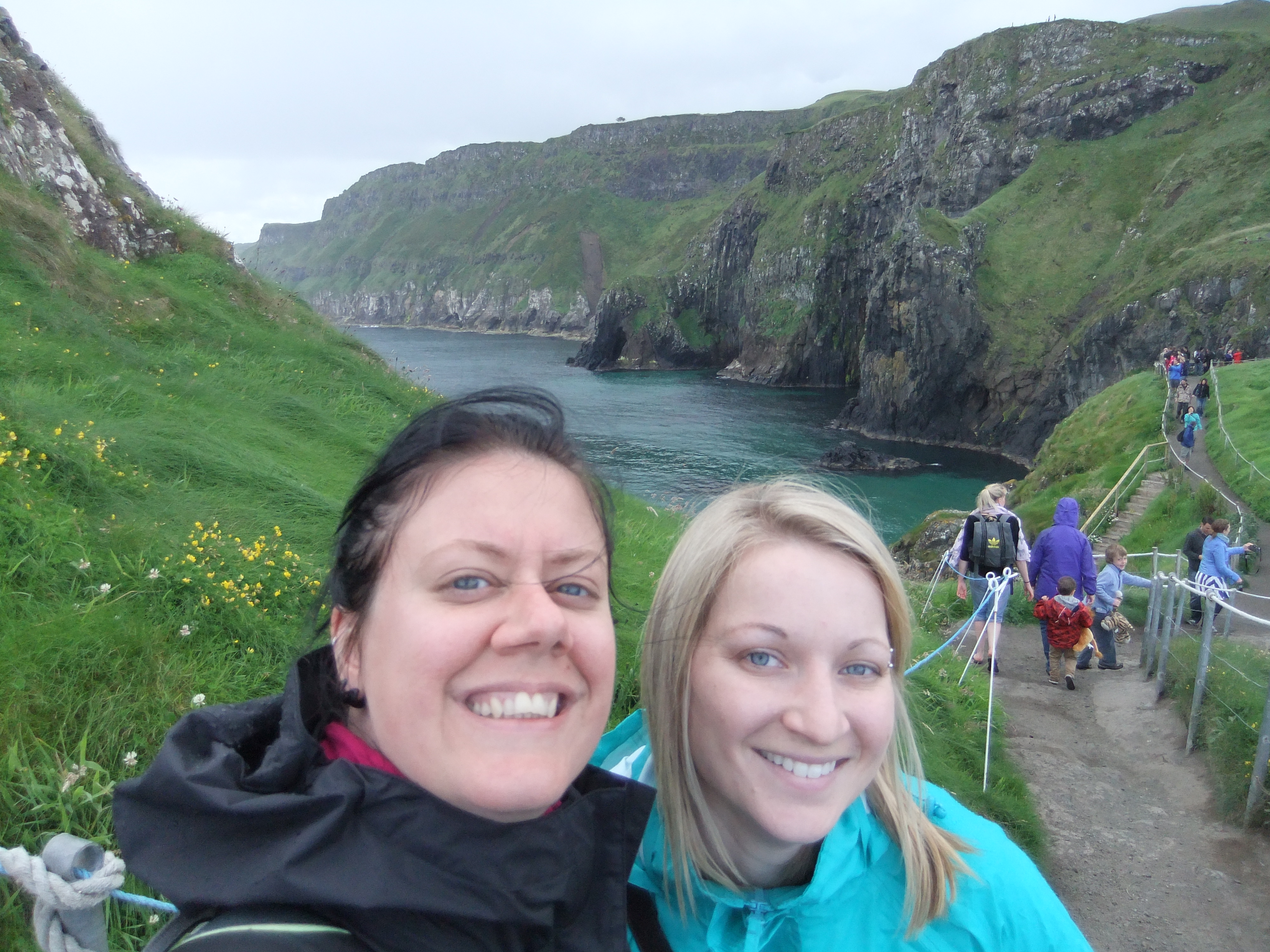 Annie et moi après notre courageuse traversée du pont de cordes.